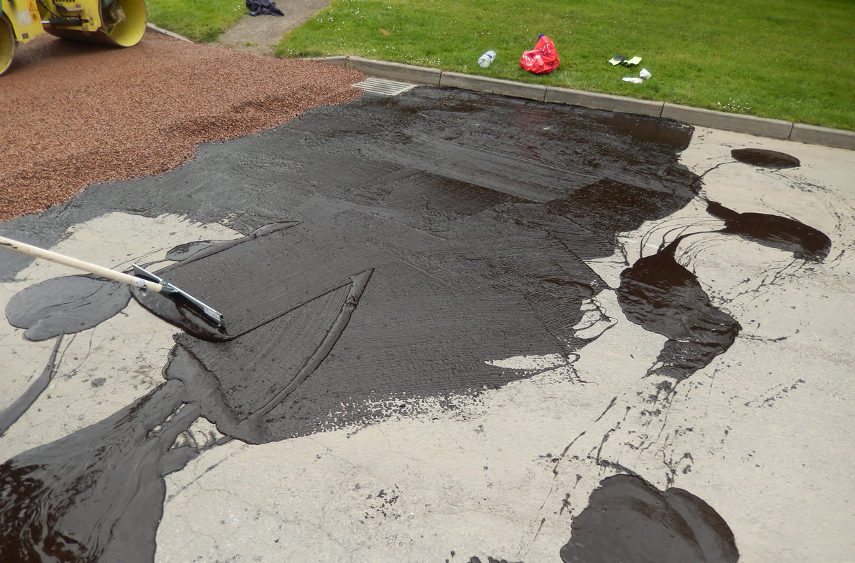 If you are hoping to use a VLS Tar and Chip surface on a existing older tarmac drive then the surface is thoroughly cleaned. Any damaged areas or pot-holes are reinstated using new tarmac. The surface is then spread with VLS emulsion and up to a 10mm sized hard stone chipping can be spread and rolled in to the VLS. This surface can then be left with a thin layer of stone chippings on it so it gives the effect of a loose gravel driveway or have the excess chippings swept off.